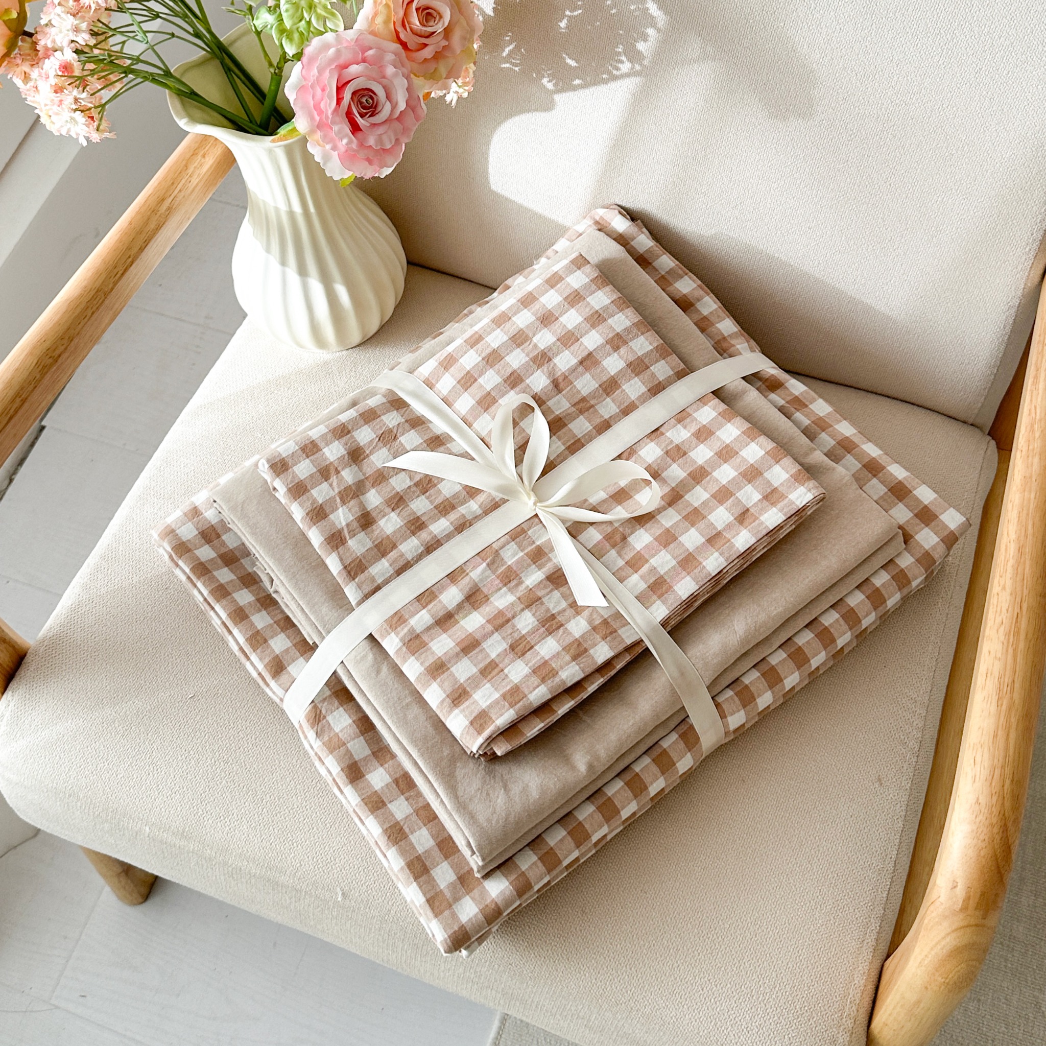 🪴🪴Thiết kế với phong cách Danshari đậm chất Nhật Bản kết hợp với xu hướng Gingham lạ mắt mang đến cho bạn set chăn ga gối hoàn hảo cho giấc ngủ 5 sao