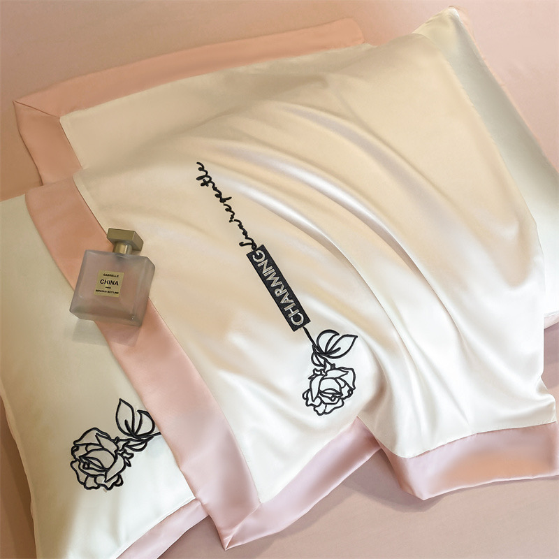 Giới thiệu bộ chăn ga chần hè phi lụa – thêu Charming With Love (Set 4PCS)