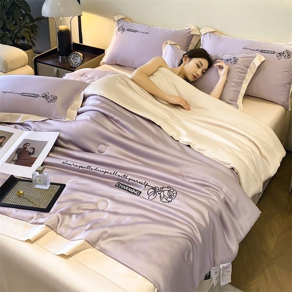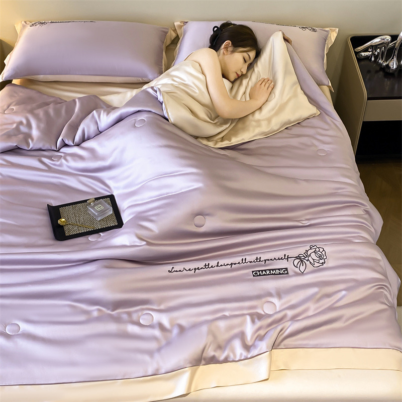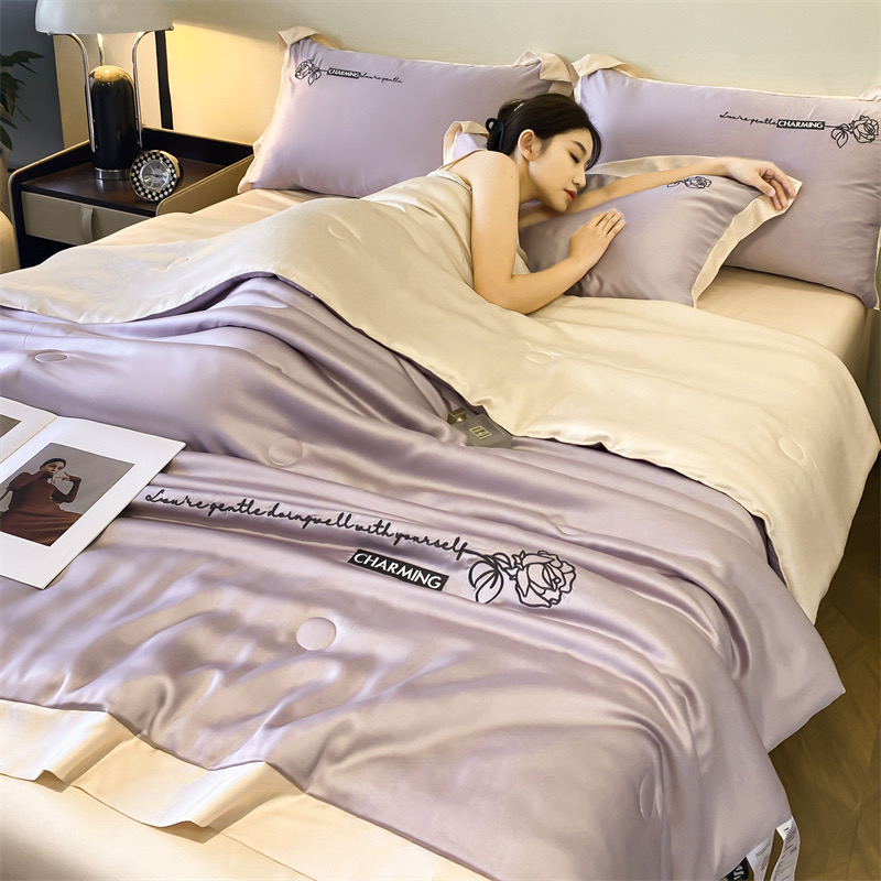4Pcs Satin Babric | Charming With Love Standard Bedsets Summer Blanket | ID 4PCSSFARBRICCHARWLOVE010