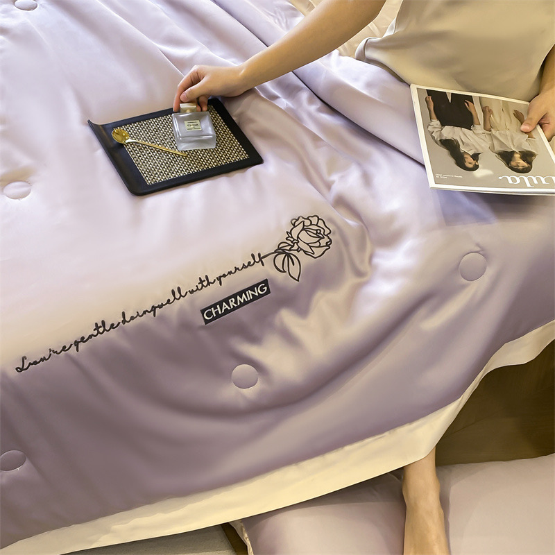 Bộ chăn ga chần hè set 4 món chất liệu phi lụa cao cấp với họa tiết thêu Charming With Love tinh xảo mang đến một chuẩn mực mới cho không gian phòng ngủ sang trọng. Bộ sưu tập sở hữu 12 tone màu pastel đắt giá, dễ phối với nhiều phong cách nội thất từ tối giản – hiện đại đến sang trọng – tinh tế, giúp căn phòng trở nên nổi bật và tràn đầy cảm xúc.