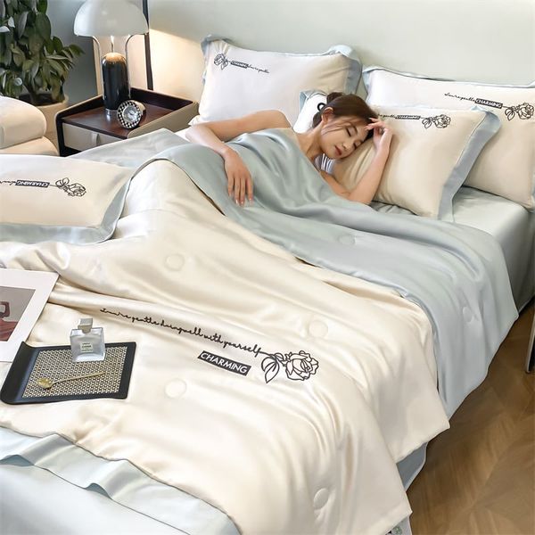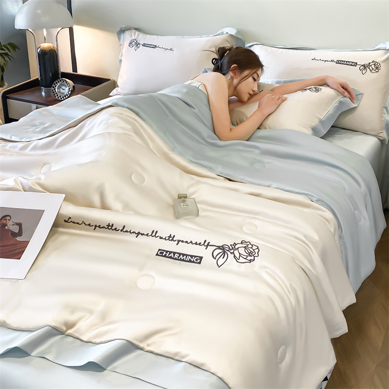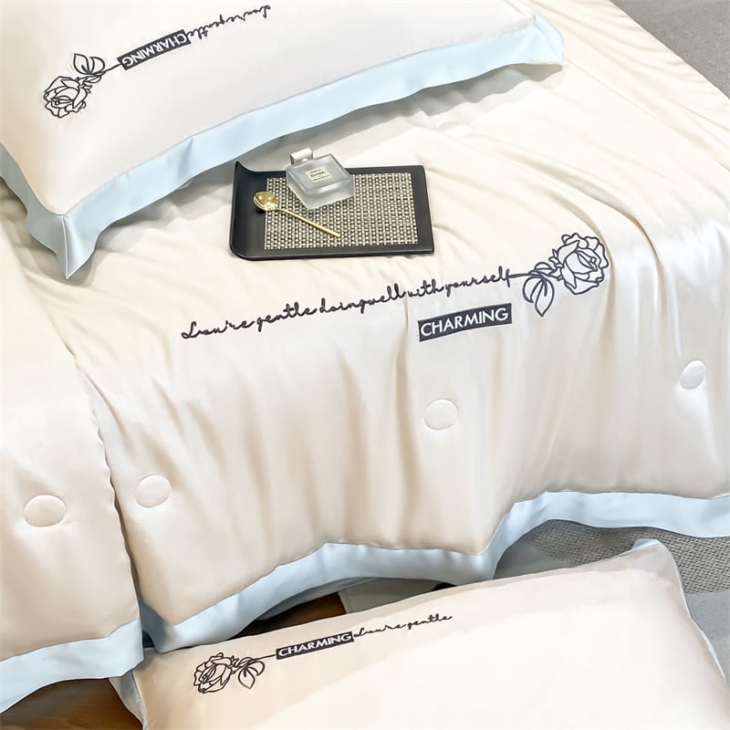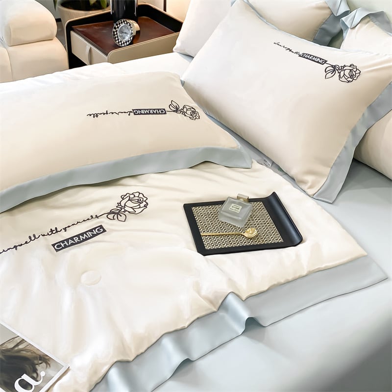 Giới thiệu bộ chăn ga chần hè phi lụa – thêu Charming With Love (Set 4PCS)
