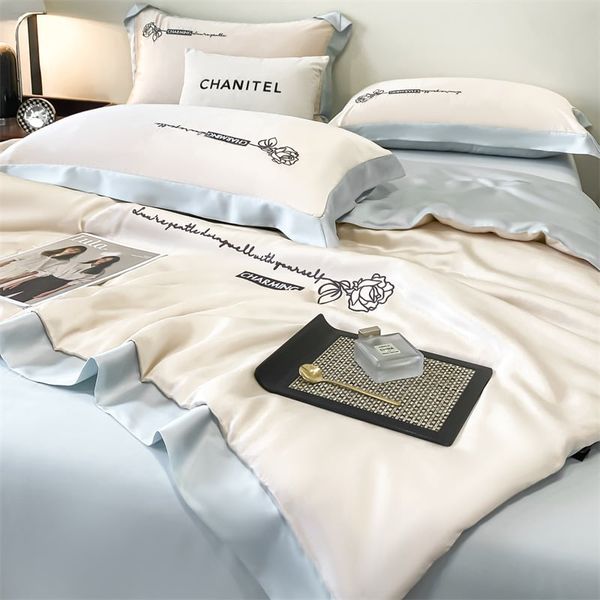 4Pcs Satin Babric | Charming With Love Standard Bedsets Summer Blanket | ID 4PCSSFARBRICCHARWLOVE012