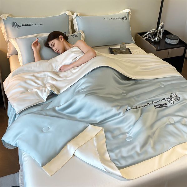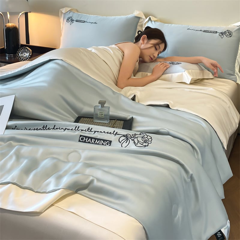 4Pcs Satin Babric | Charming With Love Standard Bedsets Summer Blanket | ID 4PCSSFARBRICCHARWLOVE07