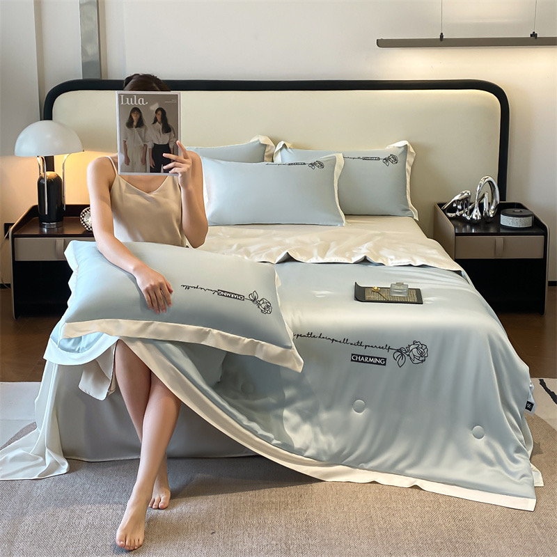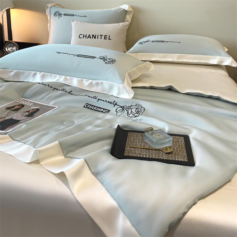 Bộ chăn ga chần hè set 4 món chất liệu phi lụa cao cấp với họa tiết thêu Charming With Love tinh xảo mang đến một chuẩn mực mới cho không gian phòng ngủ sang trọng. Bộ sưu tập sở hữu 12 tone màu pastel đắt giá, dễ phối với nhiều phong cách nội thất từ tối giản – hiện đại đến sang trọng – tinh tế, giúp căn phòng trở nên nổi bật và tràn đầy cảm xúc.