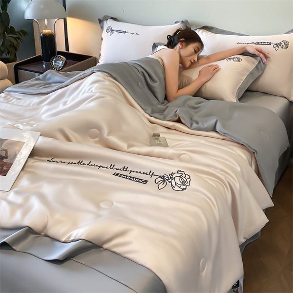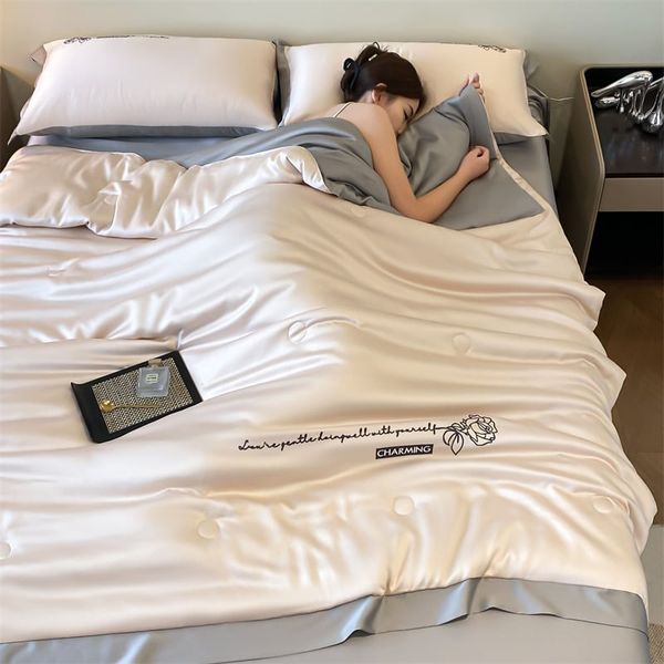 4Pcs Satin Babric | Charming With Love Standard Bedsets Summer Blanket | ID 4PCSSFARBRICCHARWLOVE08