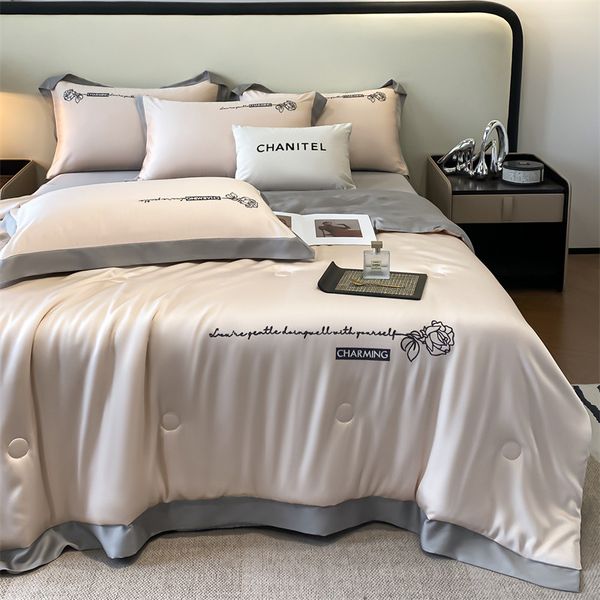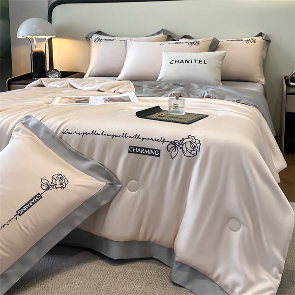 Bộ chăn ga chần hè set 4 món chất liệu phi lụa cao cấp với họa tiết thêu Charming With Love tinh xảo mang đến một chuẩn mực mới cho không gian phòng ngủ sang trọng. Bộ sưu tập sở hữu 12 tone màu pastel đắt giá, dễ phối với nhiều phong cách nội thất từ tối giản – hiện đại đến sang trọng – tinh tế, giúp căn phòng trở nên nổi bật và tràn đầy cảm xúc.