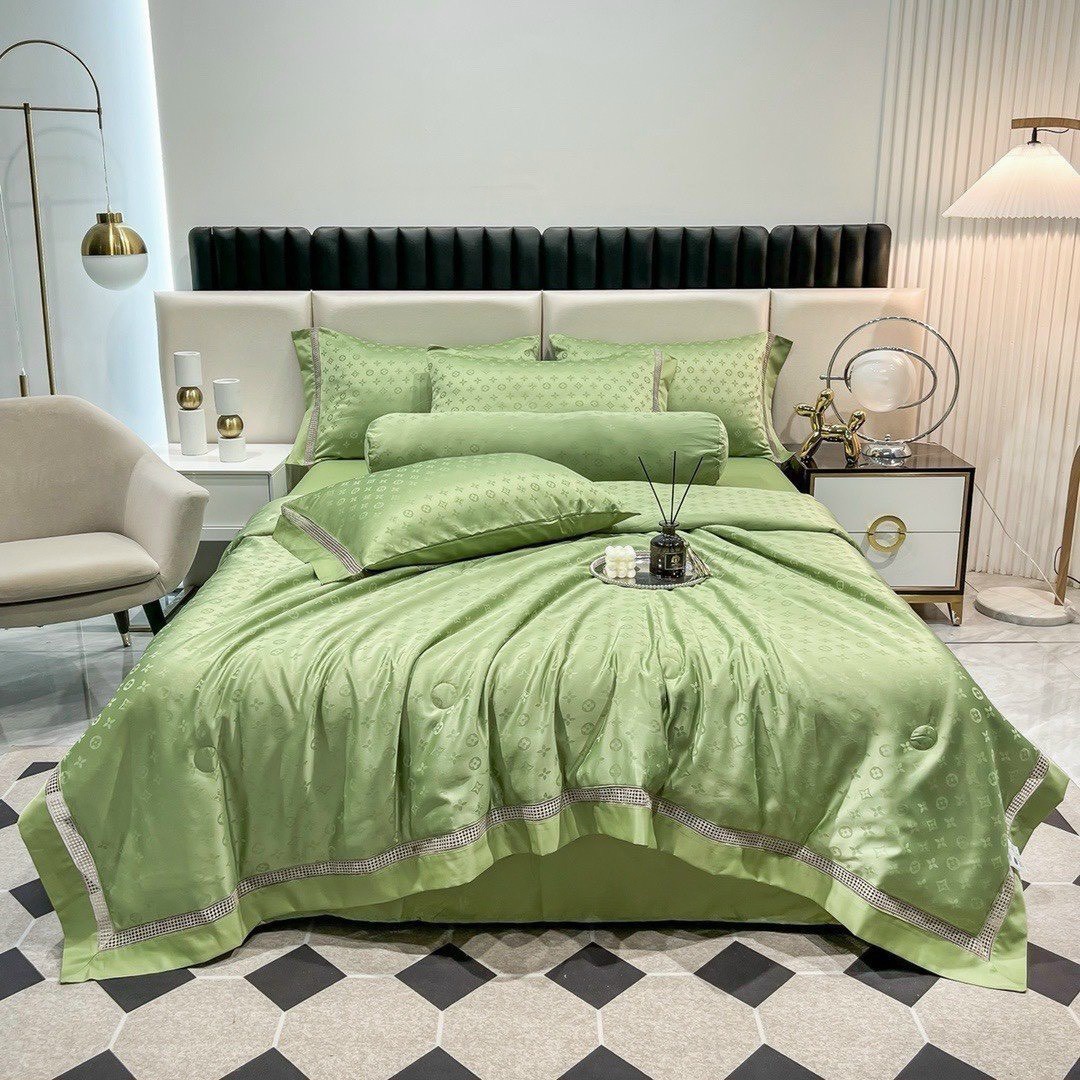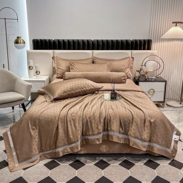 Bộ chăn ga gối chần hè được chế tác từ Jacquard Silk Satin Fabric cao cấp, nổi bật với họa tiết dệt phong cách hoa văn LV vô cùng tinh xảo và thời thượng. Bộ sưu tập mang đến 17 gam màu Pastel chủ đạo, nhẹ nhàng, thanh lịch, khi kết hợp cùng phong cách Minimal Slim hiện đại đã tạo nên một bộ sản phẩm thời trang, sang trọng và đầy đẳng cấp.