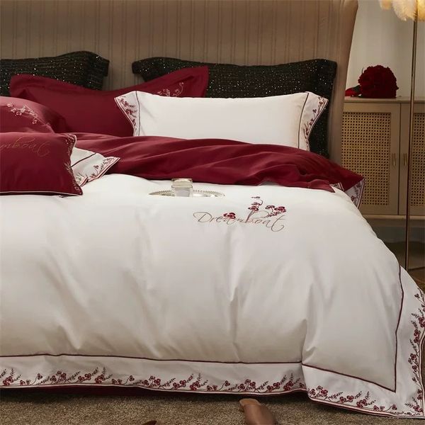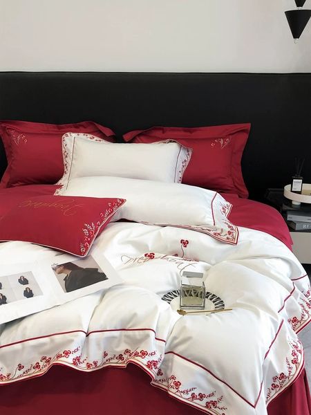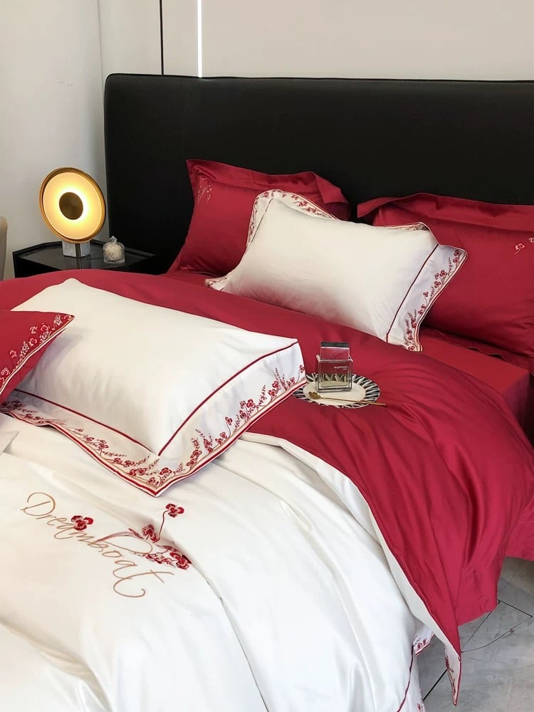 ❤️Bộ DREAMBOAT phối tone Đỏ Trắng - Wedding Bedset ❤️ 🌿 Chất liệu Lụa Ai Cập Cotton 100s – Đỉnh cao của sự mềm mại & sang trọng • Nguồn gốc cao cấp: Cotton Ai Cập là loại bông trồng ở vùng khí hậu đặc biệt dọc sông Nile, nổi tiếng thế giới với sợi dài và mảnh vượt trội hơn hẳn cotton thông thường. • Độ mịn tuyệt hảo: Chỉ số 100s cho thấy sợi vải cực kỳ mảnh, khi dệt tạo nên bề mặt vải mịn, bóng nhẹ như lụa, đem lại cảm giác chạm tay êm ái, sang trọng. • Thoáng khí – thấm hút mồ hôi: Vải có khả năng thoáng mát mùa hè, ấm áp mùa đông, điều hòa nhiệt độ cơ thể, phù hợp với khí hậu nóng ẩm ở Việt Nam. • Độ bền vượt trội: Sợi dài giúp vải dệt chặt hơn, ít xù lông, ít bai dão, giữ được màu sắc và hình dáng chuẩn sau nhiều lần giặt. • An toàn cho da: 100% cotton thiên nhiên, không pha sợi nhân tạo, thân thiện với da nhạy cảm, đặc biệt phù hợp với trẻ nhỏ và người lớn tuổi. • Cảm giác ngủ 5 sao: Kết hợp giữa mềm mại như lụa – mát như tơ – bền như cotton cao cấp, chất liệu này thường chỉ xuất hiện trong khách sạn hạng sang và các thương hiệu chăn ga cao cấp. 😍Phù hợp với Setup Phòng Cưới - Quà Tân Gia - Kỉ Niệm ngày Cưới ....