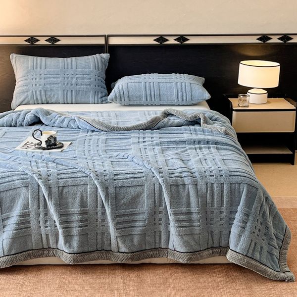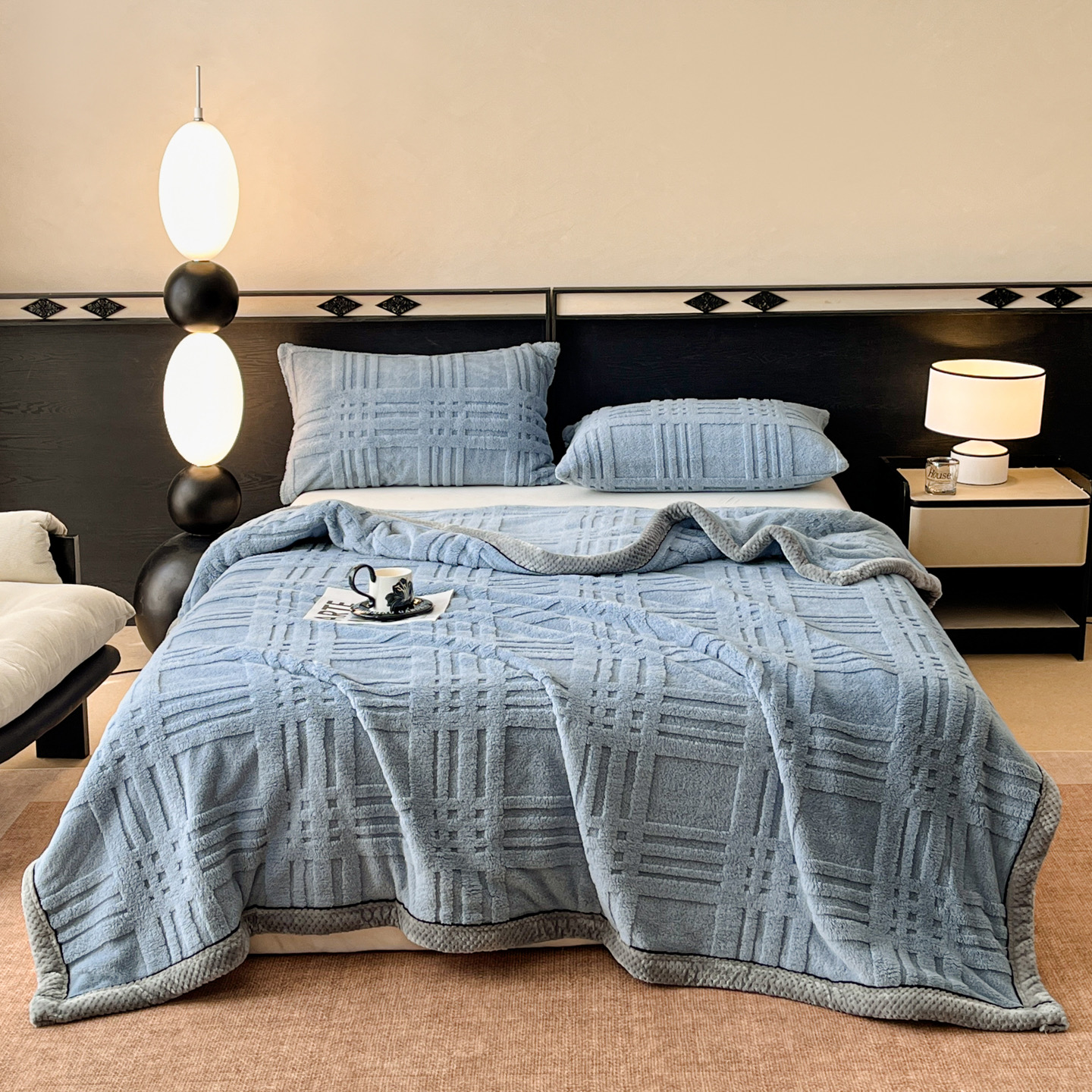 European Union Fur Wool Blanket | 3D Embossed Checkered Plus Design | 230*200cm (1.6kg) | Blue Sea KHUYẾN MÃI - ƯU ĐÃI