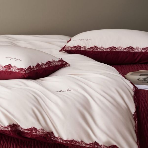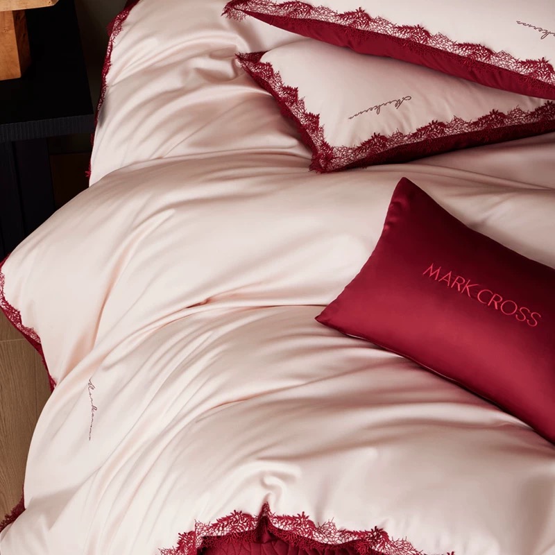 The exquisite combination of passionate red and pure white, delicately adorned with soft lace trims, brings a sense of romance, elegance, and heartfelt emotion to every honeymoon bedroom.
