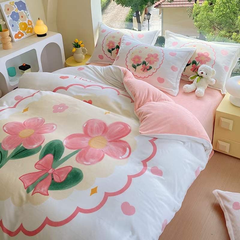 🌙 Bộ Chăn Ga Nỉ Nhung 3D – Ấm Áp & Xinh Xắn Cho Mùa Đông ❄️