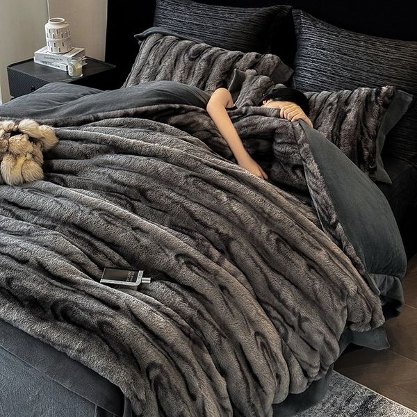 Warm Winter New Arrival Lovewe | 4Pcs Cover Luxury Bed Set Velvet Milk 380gram | ID01 Color DarkGray Wood Grain